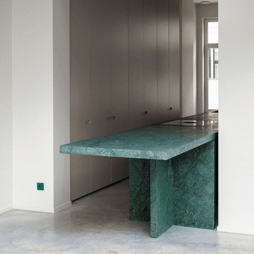 Kruopščiai apgalvotas ir nuosekliai įgyvendintas įvairių žalios spalvos atspalvių derinys čia kontrastuoja su gyvu oranžiniu tonu. „Vert anglais pâle“ ir „Orange vif“ spalvų LS 990 jungikliai įkvepia erdvei gyvybės ir sukuria išskirtinį jos identitetą. Tarpusavyje šių spalvų jungikliai taip pat harmoningai dera su FSB 1267 ir FSB 4215 modelio durų rankenomis.